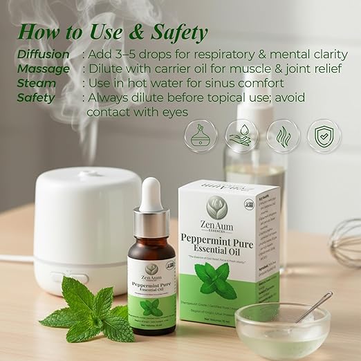 With just 2–3 drops, ZenAum Peppermint Essential Oil upgrades your self-care routine—whether you’re massaging your scalp to refresh roots, diffusing for mental clarity, or adding to bath water for a cool, spa-like experience at home.
